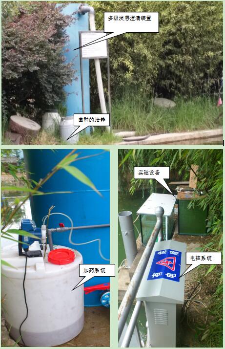 項(xiàng)目采用有效微生物菌技術(shù)結(jié)合循環(huán)凈水工藝對(duì)小型湖泊、池塘、水庫(kù)等污染匯富營(yíng)養(yǎng)化水體進(jìn)行原位、異位結(jié)合修復(fù),首次提出了富營(yíng)養(yǎng)化水體藻菌共生概念,快速建立水體生態(tài)自?xún)羝胶庀到y(tǒng),實(shí)現(xiàn)對(duì)水體富營(yíng)養(yǎng)化的根本治理。通過(guò)對(duì)天然沸石超微改性后,配合常用凈水劑復(fù)合制得物理型助凝劑(JYX-助凝劑),吸附、脫色、助凝等功能優(yōu)異,可有效吸附水中氮磷。研制出漂移式多功能凈水設(shè)備,集凈化除藻、投菌、充氧、噴泉景觀等功能于一體,具有節(jié)能、降濁、除藻效率高、投資少等優(yōu)點(diǎn)。利用該工藝處理后的水質(zhì)符合地面水環(huán)境質(zhì)量標(biāo)準(zhǔn)中的Ⅲ類(lèi)水質(zhì)標(biāo)準(zhǔn)。