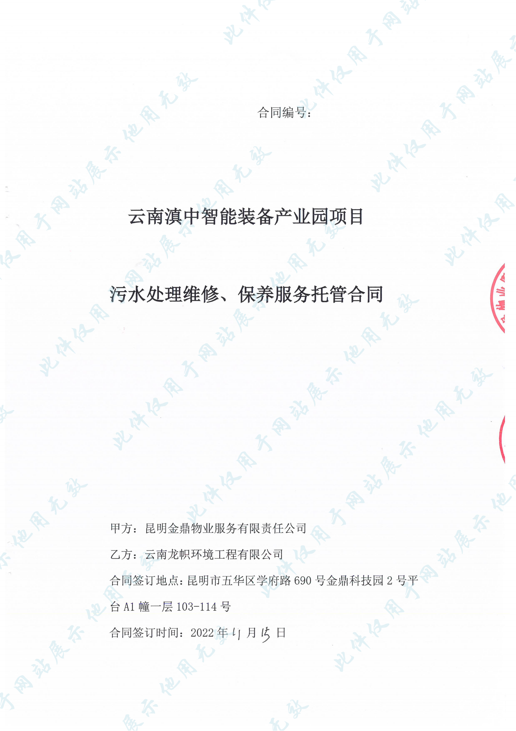 1.云南滇中智能制造產(chǎn)業(yè)園項(xiàng)目污水處理維修保養(yǎng)服務(wù)托管