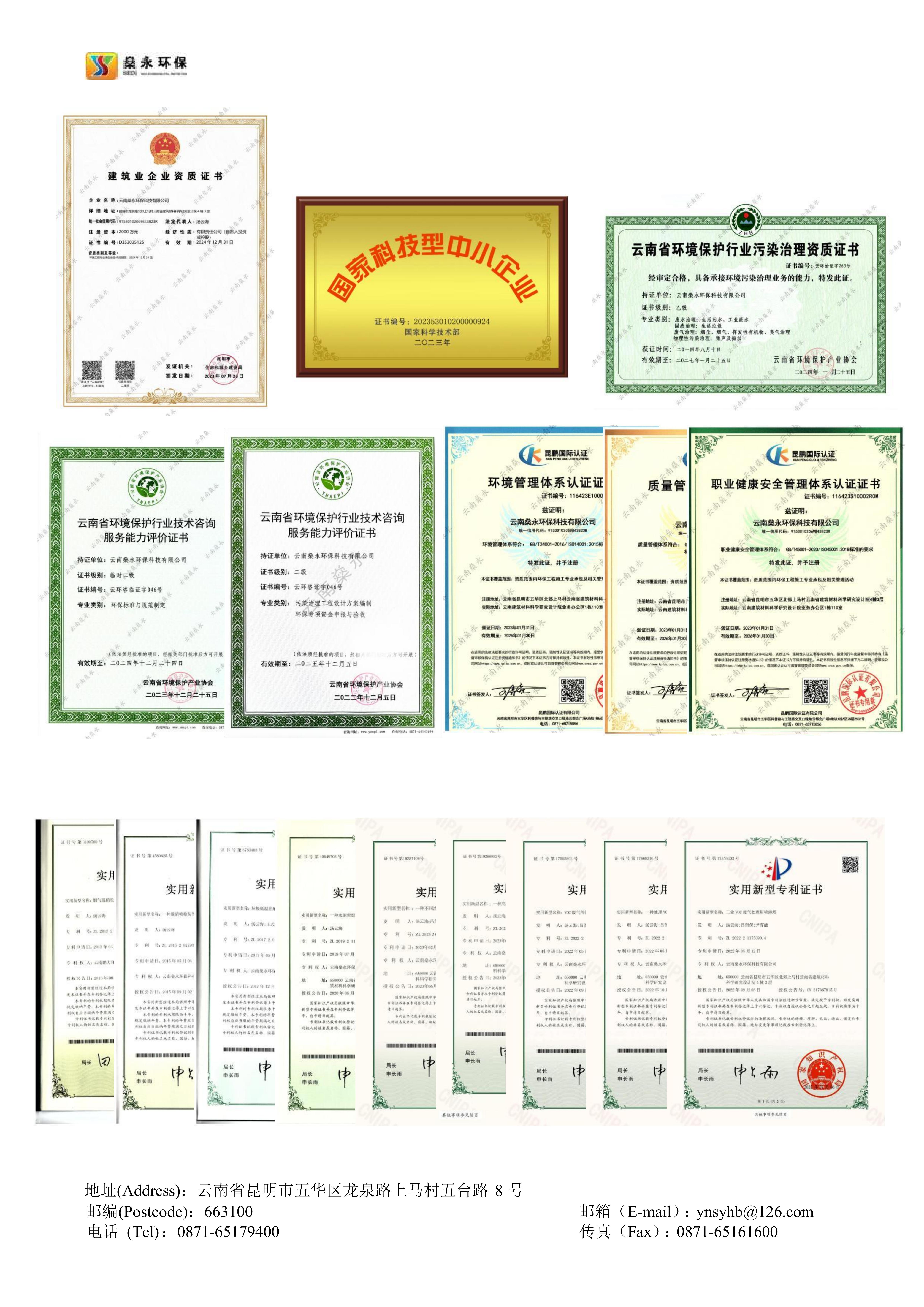 燊永公司堅(jiān)持“創(chuàng)新、協(xié)作、共贏”的價(jià)值觀,以“專(zhuān)業(yè)、專(zhuān)心、專(zhuān)注”為服務(wù)理念,以“求實(shí)、求是、求精”為質(zhì)量宗旨,為客戶提供優(yōu)質(zhì)、高效、貼心的服務(wù)。公司獲得國(guó)家專(zhuān)業(yè)部門(mén)頒發(fā)的《環(huán)境工程專(zhuān)業(yè)承包三級(jí)》資質(zhì)、《污染治理乙級(jí)》資質(zhì)、《企業(yè)信用等級(jí)A級(jí)》證書(shū)、《云南省科技型中小企業(yè)》認(rèn)定證書(shū)、《ISO9001/GBT50430質(zhì)量管理體系》證書(shū)、《ISO14001環(huán)境管理體系》證書(shū)、《ISO45001職業(yè)健康安全管理體系》證書(shū)等多項(xiàng)榮譽(yù)和多項(xiàng)的專(zhuān)利技術(shù)。
