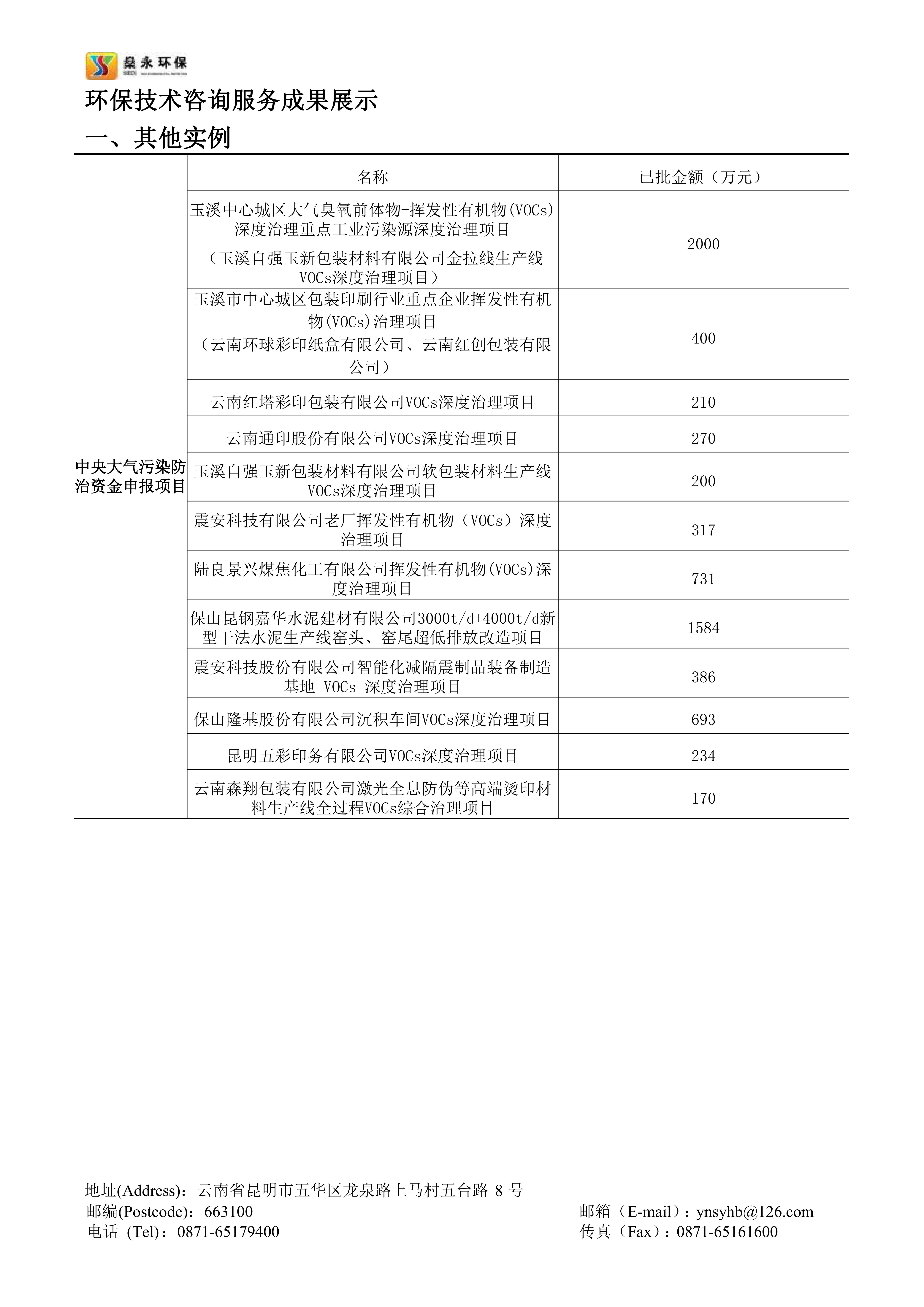 截止2023年10月,公司幫助云南省多個(gè)行業(yè)企業(yè)成功申報(bào)的中央大氣污染防治資金已入庫(kù)項(xiàng)目共計(jì)20余個(gè),申報(bào)項(xiàng)目已獲批總資金近一億余元。公司承接的云南省內(nèi)中央大氣污染防治資金申報(bào)項(xiàng)目申報(bào)成功率高,成效顯著,服務(wù)細(xì)致高效,在云南省中央大氣污染防治資金申報(bào)領(lǐng)域具有豐富的經(jīng)驗(yàn)。